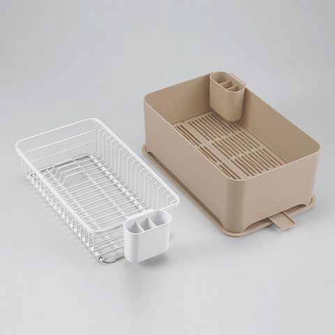 「水切りバスケット」は、トレーが付いているのでワークトップでもお使いいただけます。水が流れ出ない形になっているので、カウンターやキッチンワゴンなど、シンクから離れたところにも設置できます。
