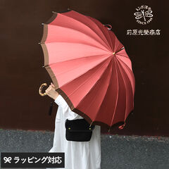 傘 雨傘 女性 大人 日本製 おしゃれ 高級 婦人傘 ギフト 前原光榮商店 レディース 長傘 カーボンボーダー 55cm 16本骨 FP015016-R2 エンジ