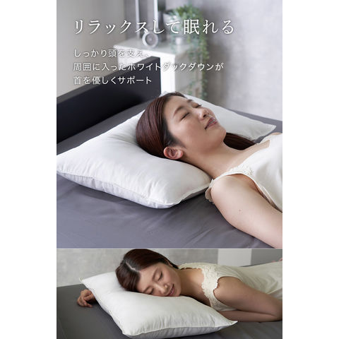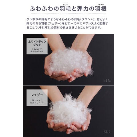 高級素材のホワイトダックダウンとフェザーがおやすみを贅沢にする『ダウントップピロー』です。ふわふわのダウンと、弾力のあるフェザー、それぞれの素材の良さを引き出しました。頭が沈み込み過ぎるのを防ぎ、朝まで良い寝姿勢を保つことができます。上品で高級感のあるデザインに仕上げ、お部屋をホテルのようなラグジュアリーな空間へとスタイルアップします。