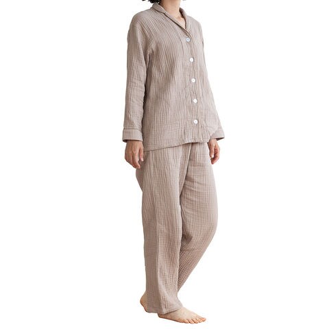 yucuss ユクスス 水洗いコットンでクシュっと仕上げた ガーゼパジャマ 綿100% ベージュ Mサイズ 21462105 レディース 女性用 大人 おしゃれ 長袖 春 夏 秋 冬