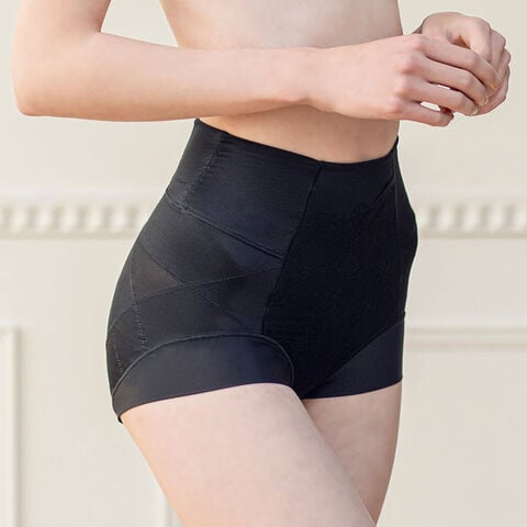 従来品に補整ラインを1本プラスして、3本の補整ラインとお腹パネルで肉感をおさえ、きれいな補整を実現しました。