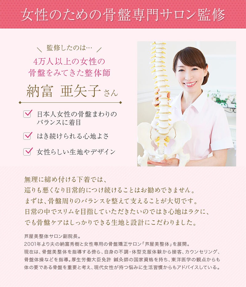 人気整体院×老舗下着メーカーがタッグを組んで開発した、芦屋美整体エアリーシリーズの補整パーツ数において過去最高の補整力を誇る、一分丈ショーツが新登場。リニューアルしてパワーアップした最強下着を是非お試しください。