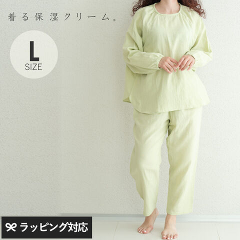 着る保湿クリーム 長袖ラグランプルオーバースリーピングウェア グリーン L D93502-56 パジャマ ルームウェア レディース 保湿 乾燥肌 ガーゼ素材 綿100%