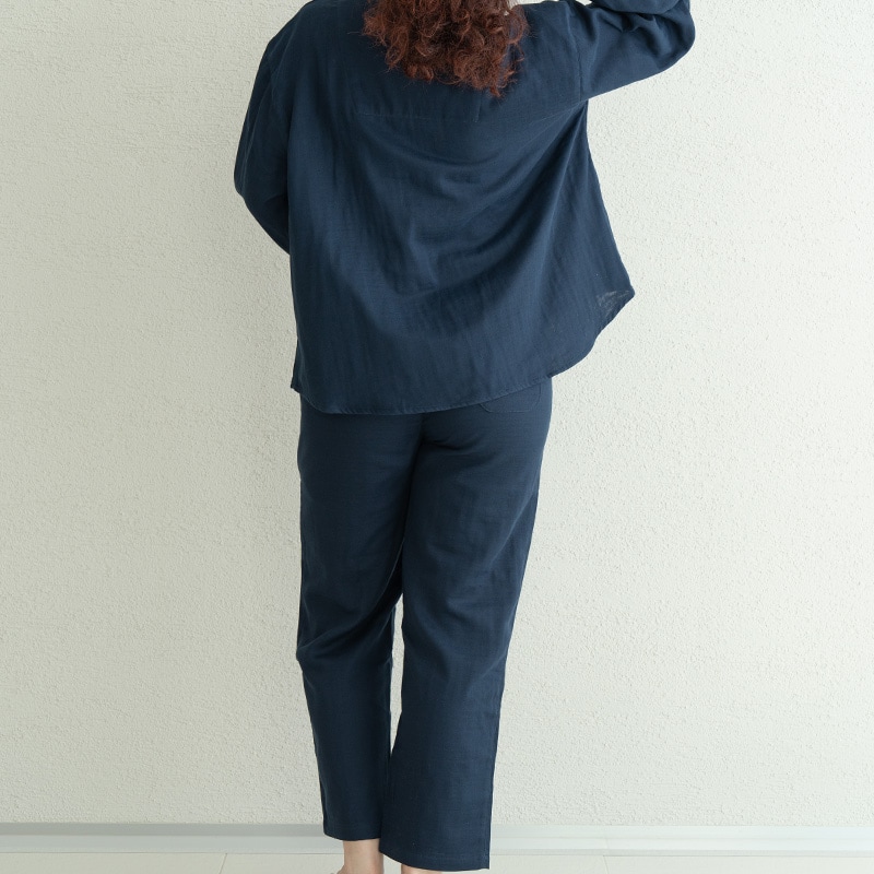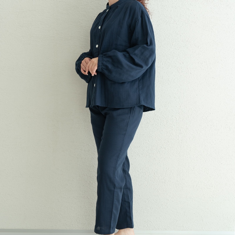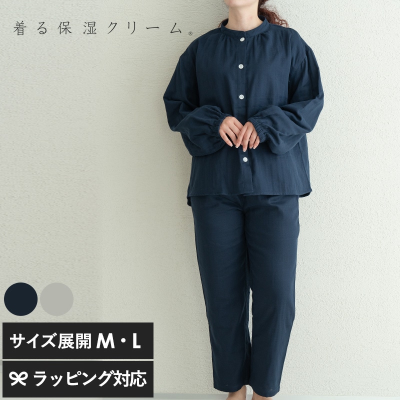 着る保湿クリーム 前開きスタンドカラースリーピングウェア ネイビー M D93505-56 パジャマ ルームウェア レディース 保湿 乾燥肌 ガーゼ素材 綿100%