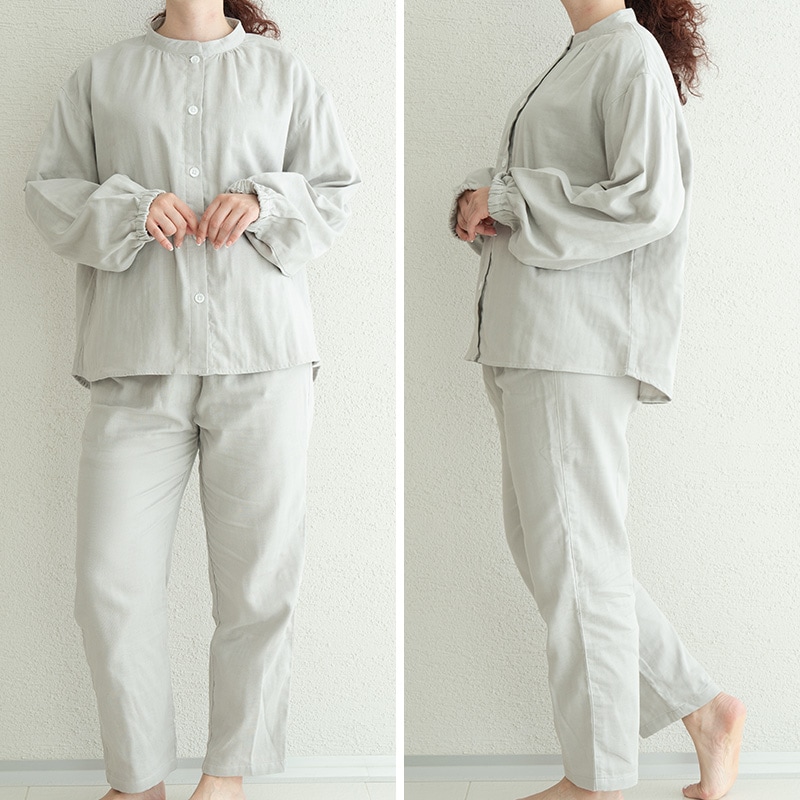 しっとりとやわらかなガーゼに天然由来成分をプラスした「着る保湿クリーム」のスリーピングウェア。幅広い年齢の方に着やすい前開き仕様で、スタンドカラーと襟元のギャザーがポイント。トリプルガーゼ素材でふんわりとした着心地です。飽きのこないシンプルデザインで、洗濯しても効果が持続するので、長くご愛用いただけます。
