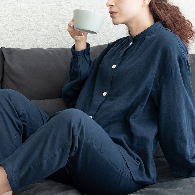 就寝前にパジャマを着る行動は脳のスイッチを睡眠モードに切り替える効果があると言われています。リラックスしたシルエットで肌触りのいいパジャマを着用することでスリープセレモニーをより印象付けられ、快眠へと導きます。