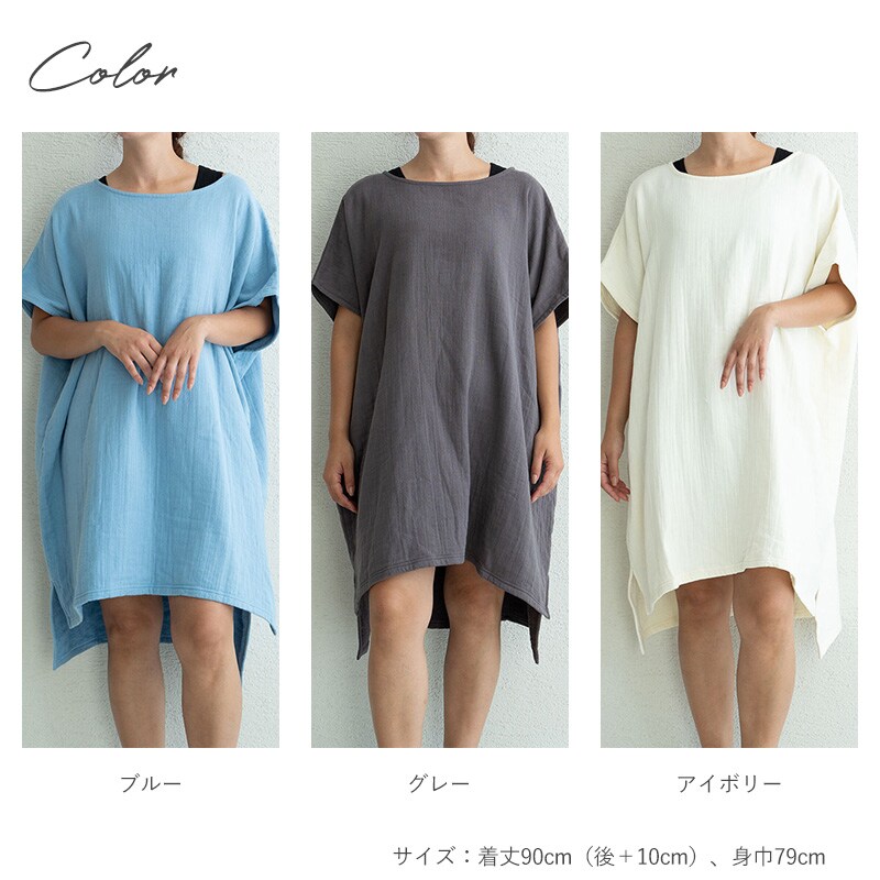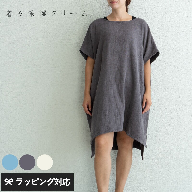 しっとりとやわらかなガーゼに天然由来成分をプラスした「着る保湿クリーム」の湯上りワンピース。忙しいお風呂あがりでもすっぽりとかぶるだけで湯冷めとお肌の乾燥から守ってくれる一枚。ゆったりとしたシルエットでリラックス感のある着心地です。飽きのこないシンプルデザインで、洗濯しても効果が持続するので、長くご愛用いただけます。