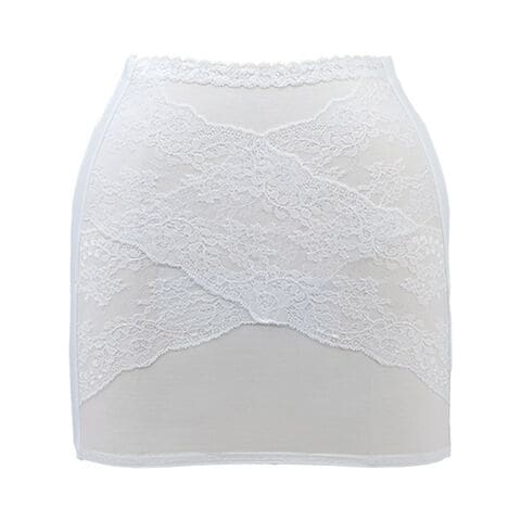 レースを施し、ランジェリー感のある上品なデザインに仕上げました。見た目の美しさだけではなく、歩く度に左右にレースが引き合って腹筋力を高めます。
