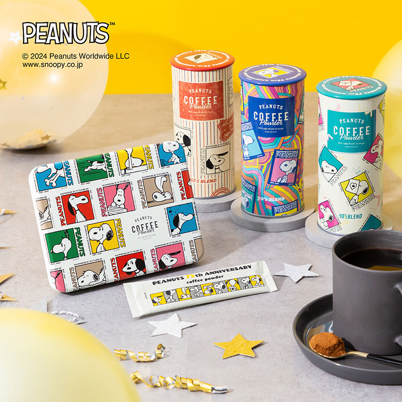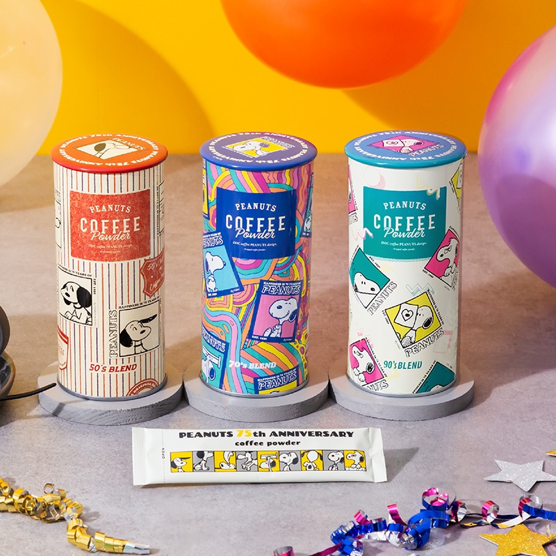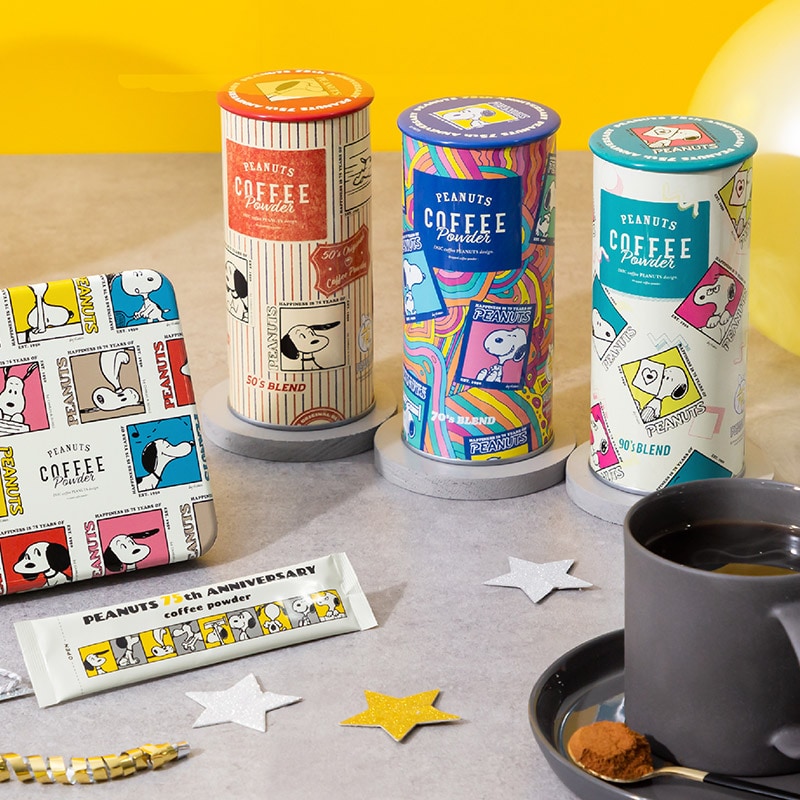 PEANUTS生誕75周年記念をお祝いする、スペシャルなコーヒーが登場。50・70・90年代、それぞれの年代で愛されていたコーヒーと文化、そして当時のスヌーピーのイラストをあしらった75周年激レアパッケージでお届けします。