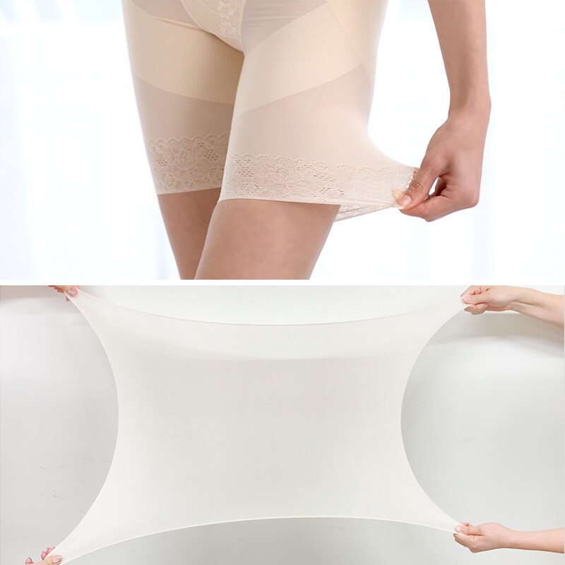 伸縮性に優れ、クモの糸のように細く透明な繊維「ライクラ」を補整部分の生地に使用することで、補整部分の縫製なしでもお尻やお腹をしっかりと引き上げることが可能になりました。