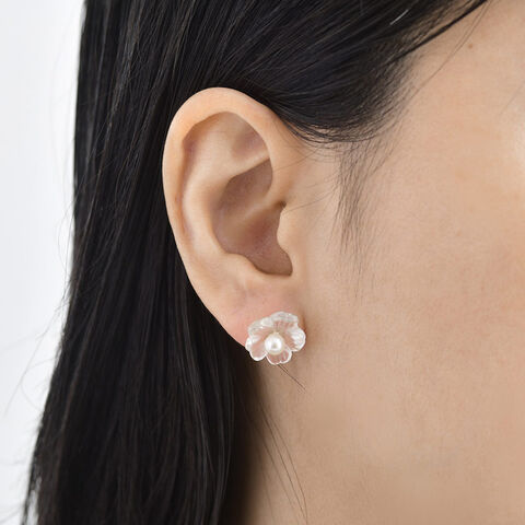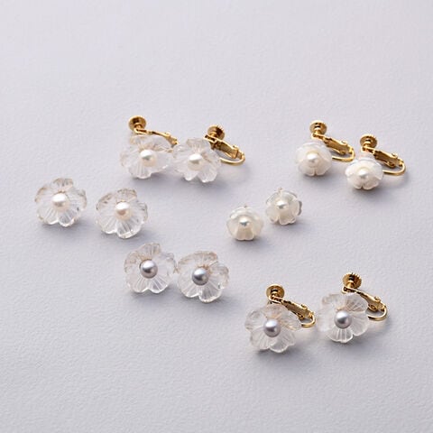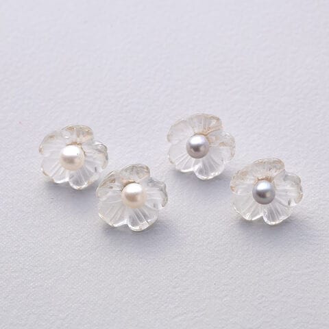 水晶と淡水パールを使い、ネモフィラをイメージしたかわいいお花のピアス。透明の水晶でできた花びら部分と中央に照りの綺麗な淡水パールを合わせた、少しボリューム感のあるピアスです。繊細な美しい輝きを放つ、水晶と淡水パールのコンビネーションがなんとも魅力的です。