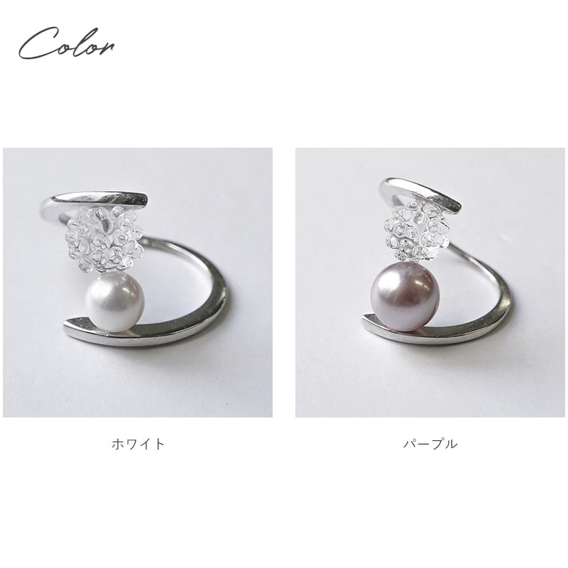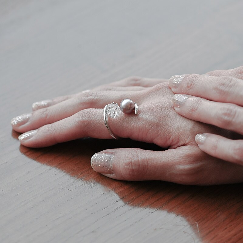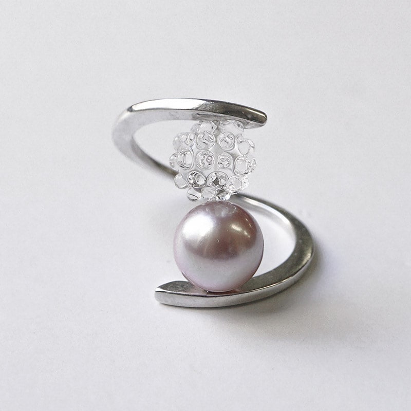 星のかけらが集まってできる、大きな光の珠。流れのあるシンプルなフォルムとパールの質感が、手元を軽やかに演出するリング。普段使いからフォーマルシーンまで幅広くお楽しみいただけるデザインです。
