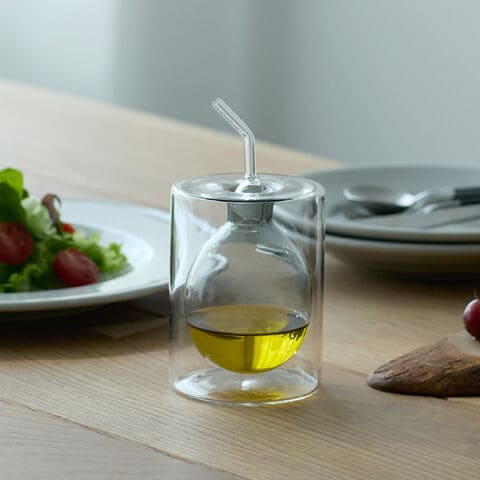 オリーブオイルなどの食用油を移し替えて使用することで、量を調整しやすくピンポイントで注ぎやすいのも特長。高いデザイン性と使いやすさが両立したアイテムです。