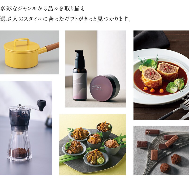 様々なシーンを思い浮かべながら選ぶひととき。贈られて包みを開けた時から選ぶ過程まで、心動かされる物との出会いも一緒にお楽しみいただけます。それぞれのスタイルに合う上質な品々を、贈り主様から先様へ感謝の気持ちをのせて大切に贈り届けます。