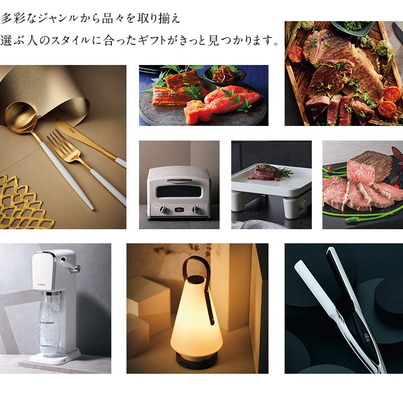 様々なシーンを思い浮かべながら選ぶひととき。贈られて包みを開けた時から選ぶ過程まで、心動かされる物との出会いも一緒にお楽しみいただけます。それぞれのスタイルに合う上質な品々を、贈り主様から先様へ感謝の気持ちをのせて大切に贈り届けます。