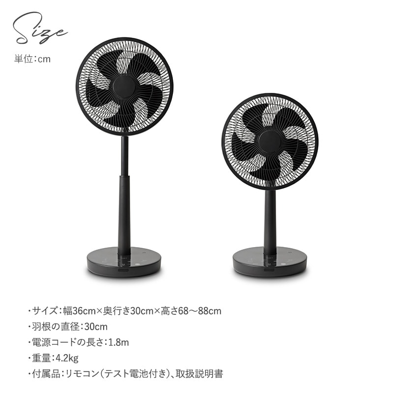 風量を30分ごとに1段階ずつ下げ、静かな運転と控えめなランプで眠りを妨げません。高さ調整(68~88cm)も可能で、生活スタイルに合わせて使えます。