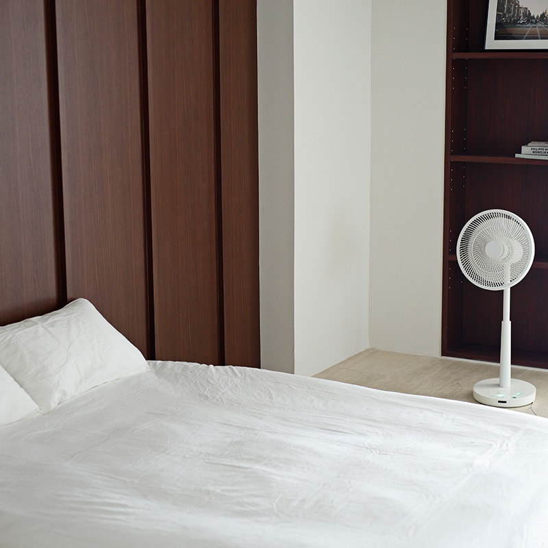 シロカ独自の「ふわビューン技術」で静音性と風力を両立。8段階の風量調節で、寝室の優しい風から部屋干し対応の強風まで、1台で幅広く活躍します。