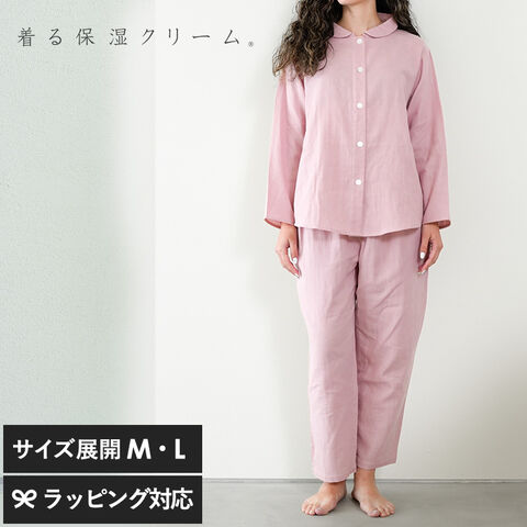 着る保湿クリーム 長袖前開きミニショールカラーパジャマ D93535-59 スモーキーピンク M パジャマ ルームウェア レディース 保湿 乾燥肌 ガーゼ素材 綿100% おしゃれ 着る保湿クリーム ナイトケア