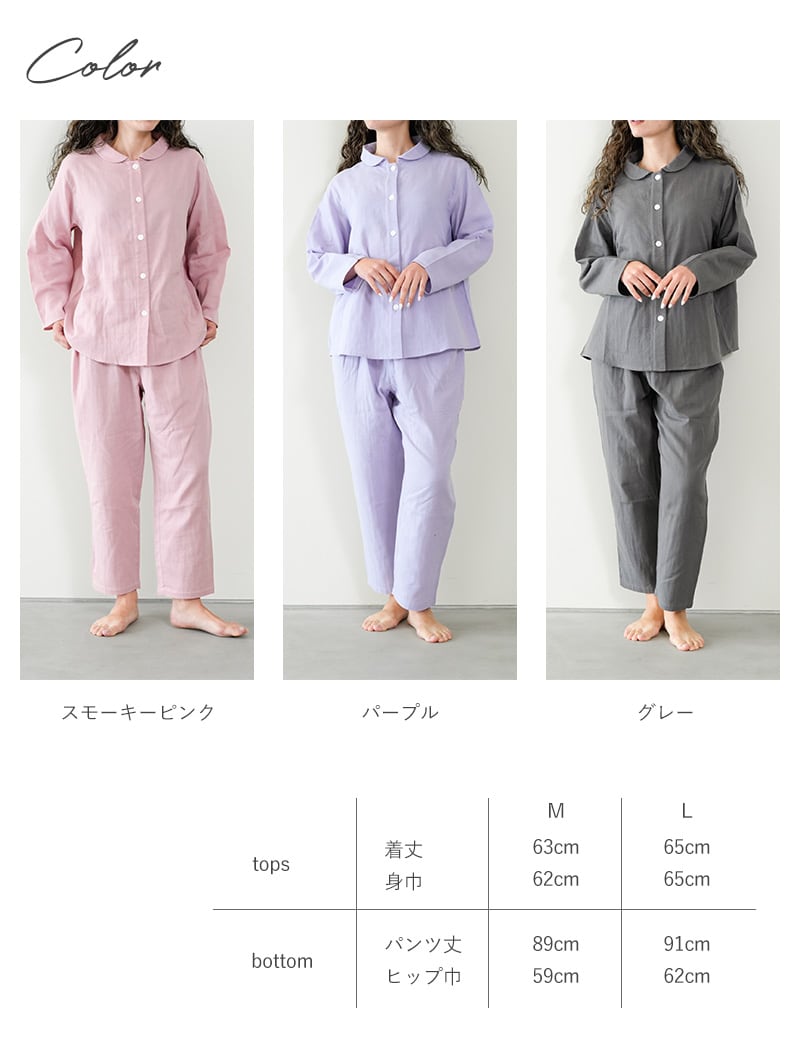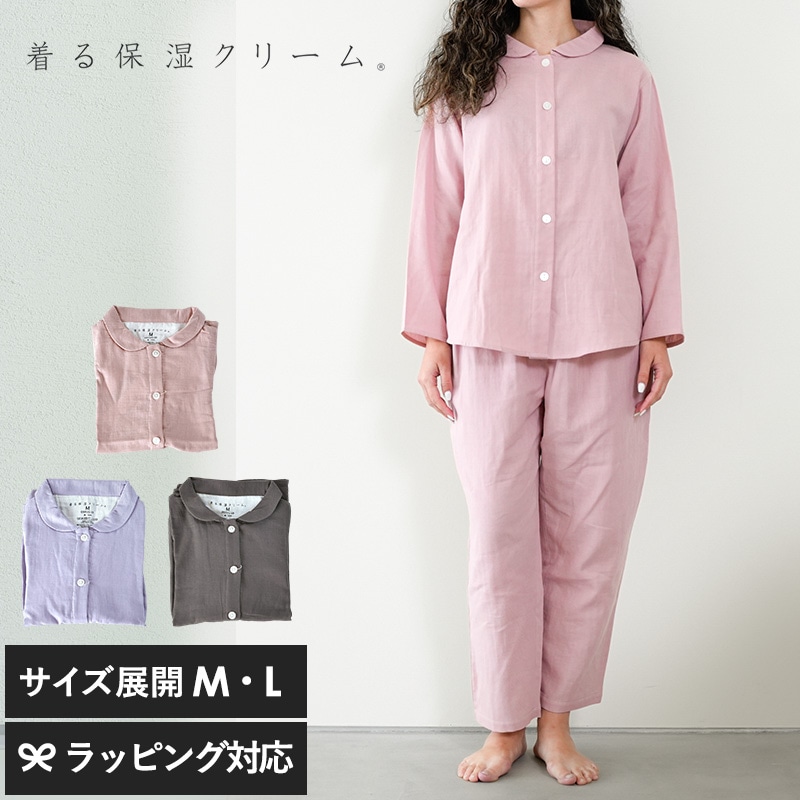 着る保湿クリーム 長袖前開きミニショールカラーパジャマ D93535-59 パープル M パジャマ ルームウェア レディース 保湿 乾燥肌 ガーゼ素材 綿100% おしゃれ 着る保湿クリーム ナイトケア