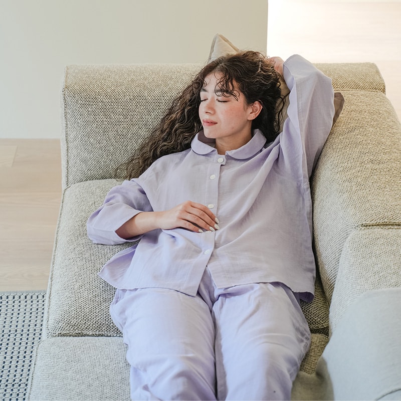 就寝前にパジャマを着る行動は脳のスイッチを睡眠モードに切り替える効果があると言われています。肌触りのいいパジャマを着用することでスリープセレモニーをより印象付けられ、快眠へと導きます。