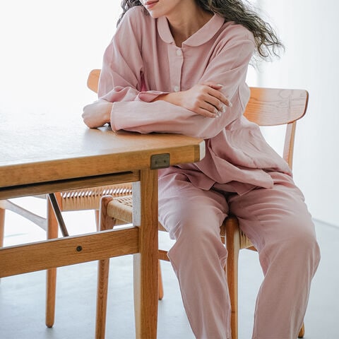 快適な睡眠環境は就寝中のエアコンなどによる乾燥から肌を守ることが大切です。水分率の高い生地を使用し包み込むような着心地と軽やかさで、乾燥の季節も快適に過ごせるやさしいパジャマです。