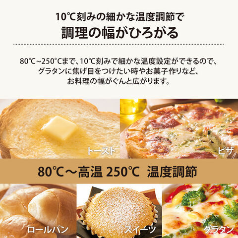 簡単に調理のできるマイコン自動コースを9つ搭載。手づくりパンの二次発酵やフライの温め、冷凍クロワッサン生地を解凍から焼き上げまでお任せできる優れものです。