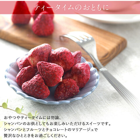 おやつやティータイムには勿論、シャンパンのお供としてもお楽しみいただけるスイーツです。シャンパンとフルーツとチョコレートのマリアージュで贅沢なひとときをお過ごしください。かわいいサイズ感で、大切な方へのちょっとしたギフトやおもてなしにもおすすめです。
