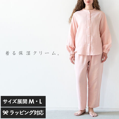 着る保湿クリーム 長袖前開きバルーンスリーブパジャマ D93500-66 ピンク M パジャマ レディース 保湿 保湿成分 乾燥 天然由来成分 ガーゼ Wガーゼ 綿100% おしゃれ かわいい ナイトケア 着る保湿
