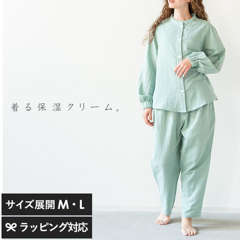 着る保湿クリーム 長袖前開きバルーンスリーブパジャマ D93500-66 ミントグリーン M パジャマ レディース 保湿 保湿成分 乾燥 天然由来成分 ガーゼ Wガーゼ 綿100% おしゃれ かわいい ナイトケア 着る保湿