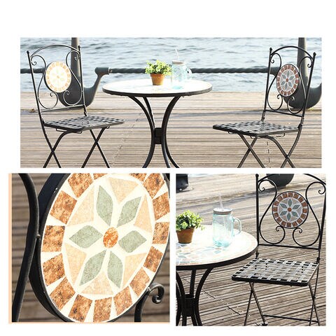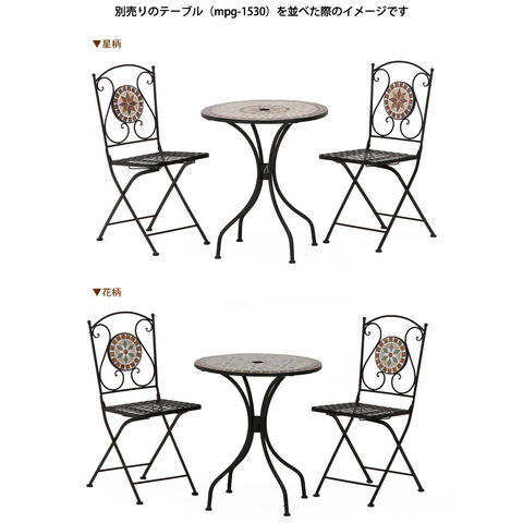 備考:美しいモザイク柄のガーデンチェア。設置すればワンランク上のガーデンに