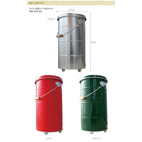 備考:トタンはポリ容器などにくらべると丈夫で長持ちするうえに、日光を遮断し、防虫・除湿にも優れています!お米の鮮度・美味しさを保ちます。