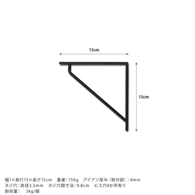 サイズ/重さ:幅1×奥行15×高さ15cm 重量:156g アイアン厚み(取付部):4mm ネジ穴:直径3.5mm ネジ穴間寸法:9.8cm ビス穴4か所有り