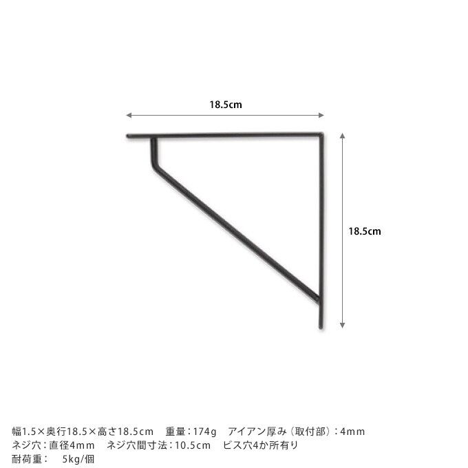 サイズ/重さ:幅1.5×奥行18.5×高さ18.5cm 重量:174g アイアン厚み(取付部):4mm ネジ穴:直径4mm ネジ穴間寸法:10.5cm ビス穴4か所有り