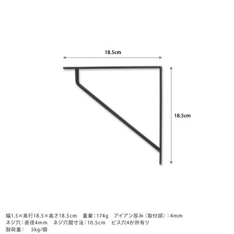 備考:トライアングル型のシンプルなアイアンブラケット。スッキリしたデザインと色合いが、飾る場所を選びません。サイズバリエーションも豊富なので、選びやすいのもこのブラケットのシリーズです。