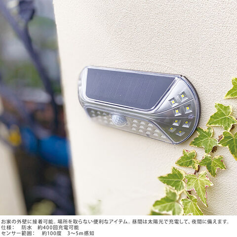 防犯ライト 外壁接着 人感センサー ソーラーライト シルバー