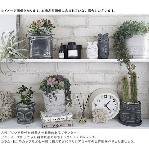 備考:古代ギリシア時代を想起させる趣のあるプランター。アンティーク加工で少し褪せた感じがちょっぴりノスタルジック。コラム(柱)やカップなども一緒に揃えて古代ギリシアローマの世界観を作り出しましょう。