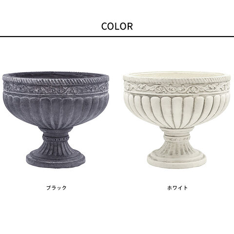 備考:力強さと美しさが融合したローマ風のデザイン。 アンティーク調が古代ローマ時代を想起させます。 たくさんの植物を盛り付ければローマの繁栄があなたのお家に蘇ります。 同じシリーズのコラム(柱のデザインの花台)と合わせて飾るとより一層引き立ちますのでオススメです。