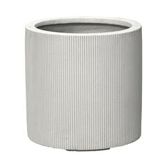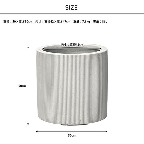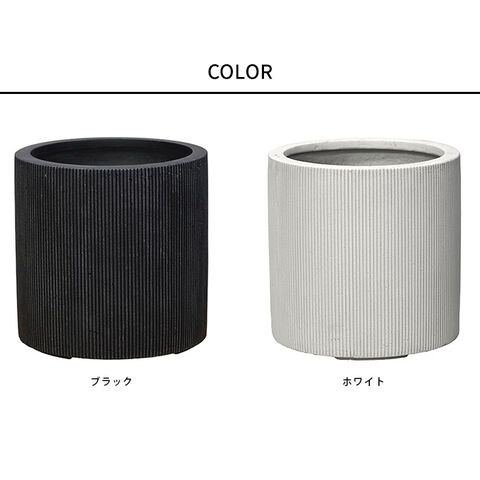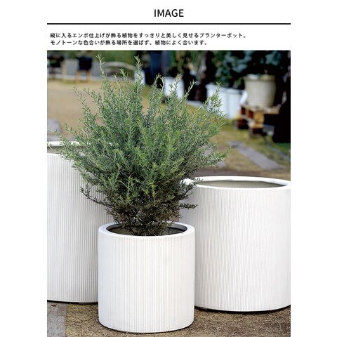 備考:縦に入るエンボ仕上げが飾る植物をすっきりと美しく見せるプランターポット。モノトーンな色合いが飾る場所を選ばず、植物によく合います。