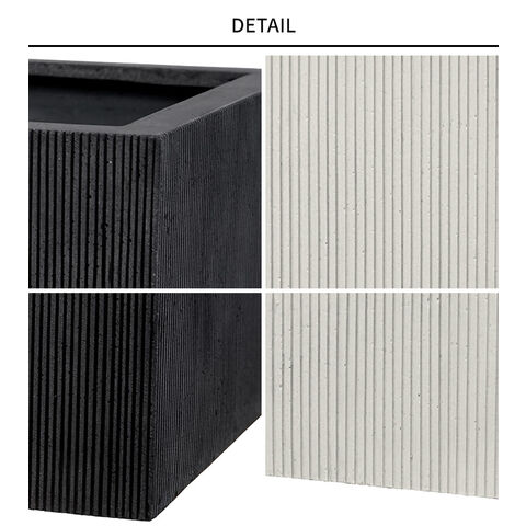 備考:縦に入るエンボ仕上げが飾る植物をすっきりと美しく見せるプランターポット。モノトーンな色合いが飾る場所を選ばず、植物によく合います。