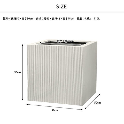 プランター 美しい縦縞 エンバスキューブ 50×50cm  プランターポット 植木鉢 大型 大鉢 軽量 シンプル FRP 丈夫 穴あり テラス バルコニー 公共施設 エントランス おしゃれ インテリア