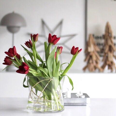 端正なフォルムが美しく花を包み込む洗練されたデザインのフラワーベース。