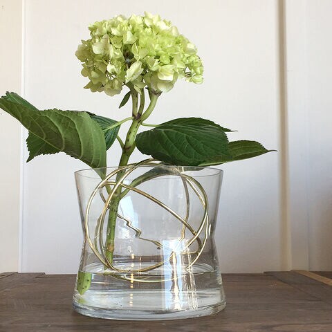 中のスチールボールは花留めとしての機能もあり、切り花をアレンジメントしやすいのもポイント。