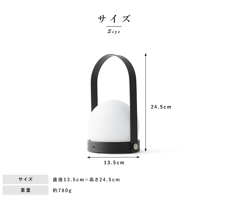 事務所のデスク、ダイニングテーブルでキャンドル代わりにといった屋内使用はもちろん、コードレスでも使用できるので、自転車かごに入れて、ピクニック、フェス、月明かりのビーチといったアウトドアに持ち出すにも手頃なサイズ。