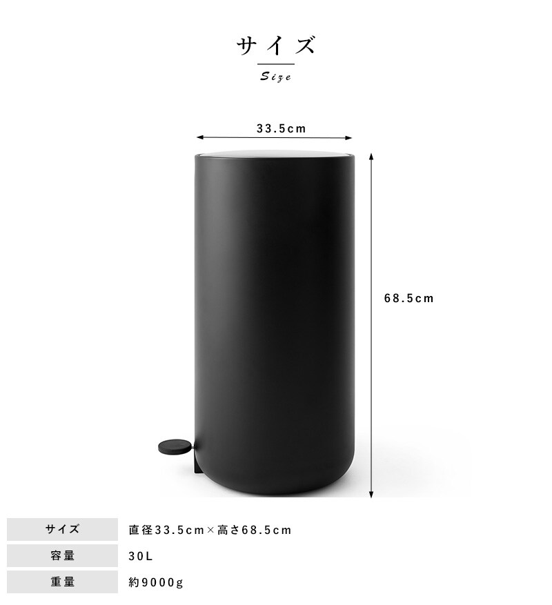 30Lの大き目サイズで台所やリビングのごみをまとめるようなどのにも最適です。 サイズ違いのシリーズ展開もあるので用途に合わせて揃えるのもおすすめです