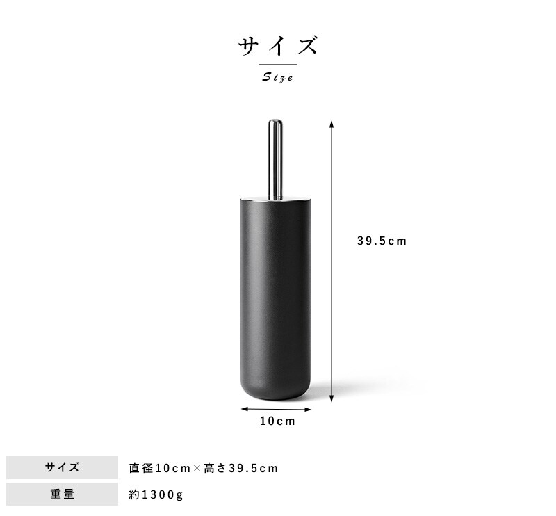 安定感が非常に重要なトイレブラシですが、このホルダー底面にはずっしりとしたステンレスの重りが入っているので、抜群の安定性を誇ります。 また蓋とブラシが一体になった構造により、水滴の跳ね返りを防ぐ効果もあり、さらに快適な使い心地を実現しています。 同シリーズの洗面所用小物とシリーズで揃える事ができ、モノトーンで統一感あるインテリアを演出できますので、飲食店などにもおすすめです。