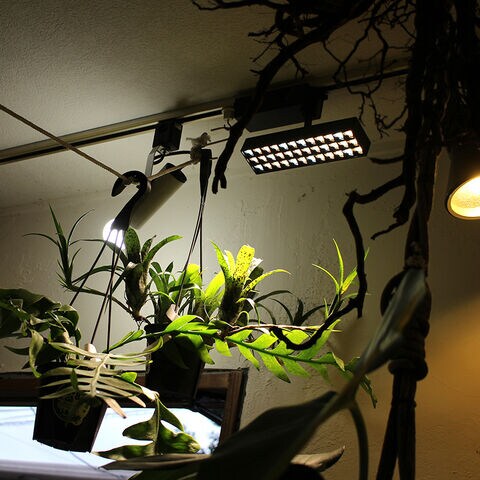 日当たりの悪い場所でも、ダクトレールに取り付けて植物が光合成に必要な光を届けられるスポットライト。 太陽光に近い自然な光が植物の生長や健康維持を促します。