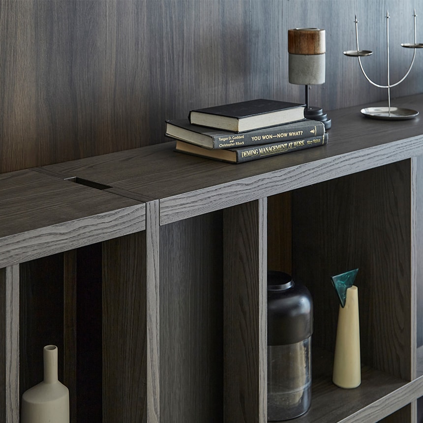 背面が無いデザインなので、光や視界を遮らず、お部屋に圧迫感なく設置していただけます。