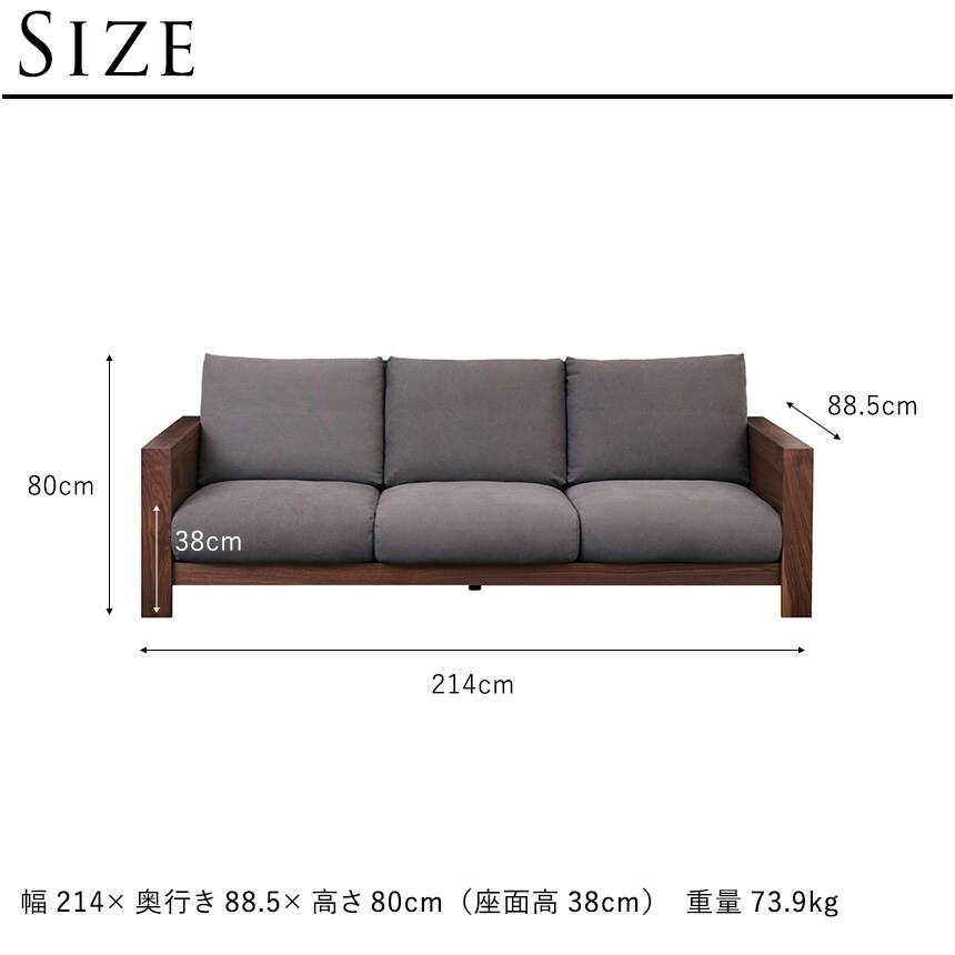 サイズ/重さ:幅214×奥行88.5×高さ80cm 座面高38cm 重量:73.9kg