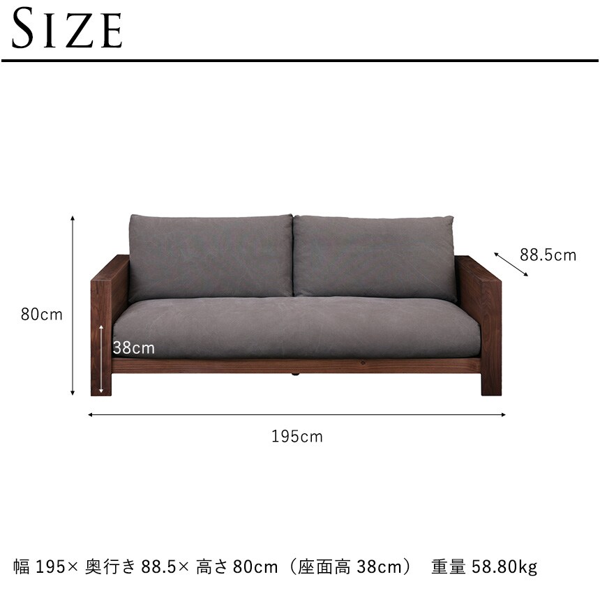 サイズ/重さ:幅195×奥行88.5×高さ80cm 座面高38cm 重量58.8kg