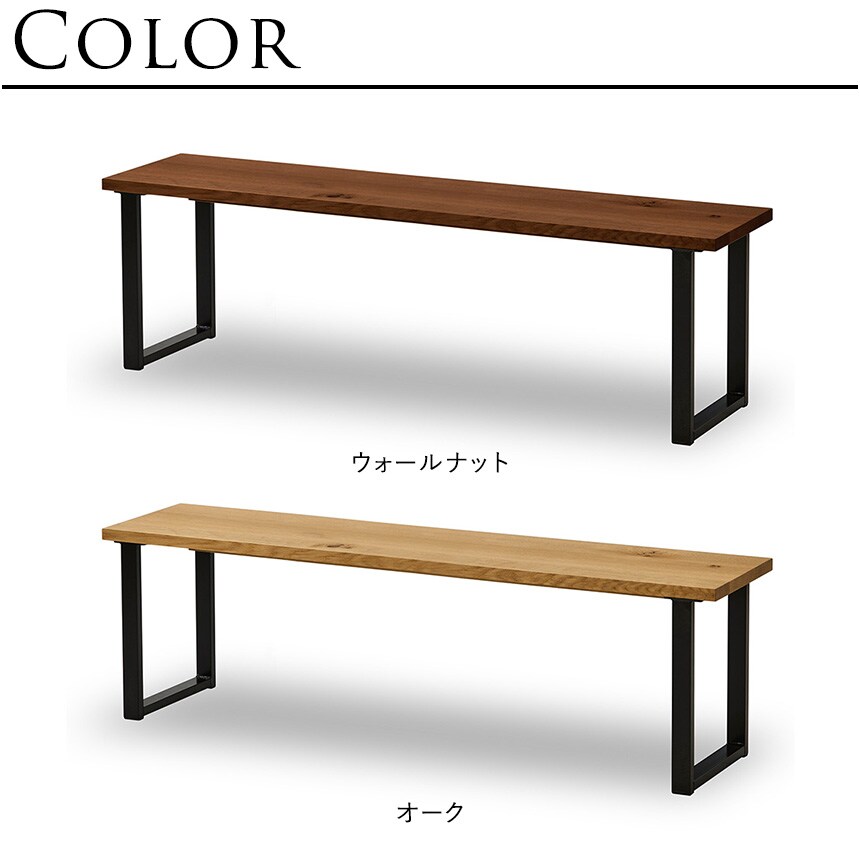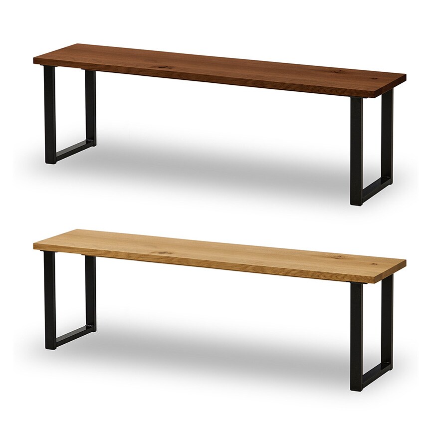 無垢材天板とスチール脚を使用したシンプルなデザインのベンチ
